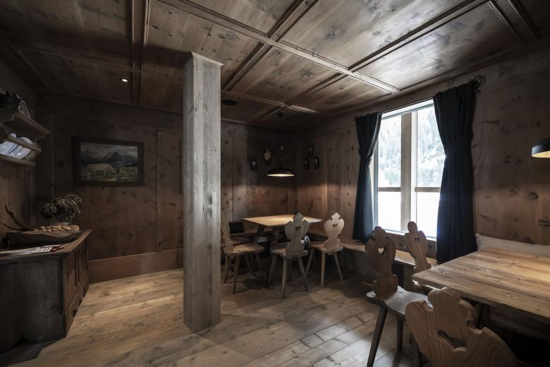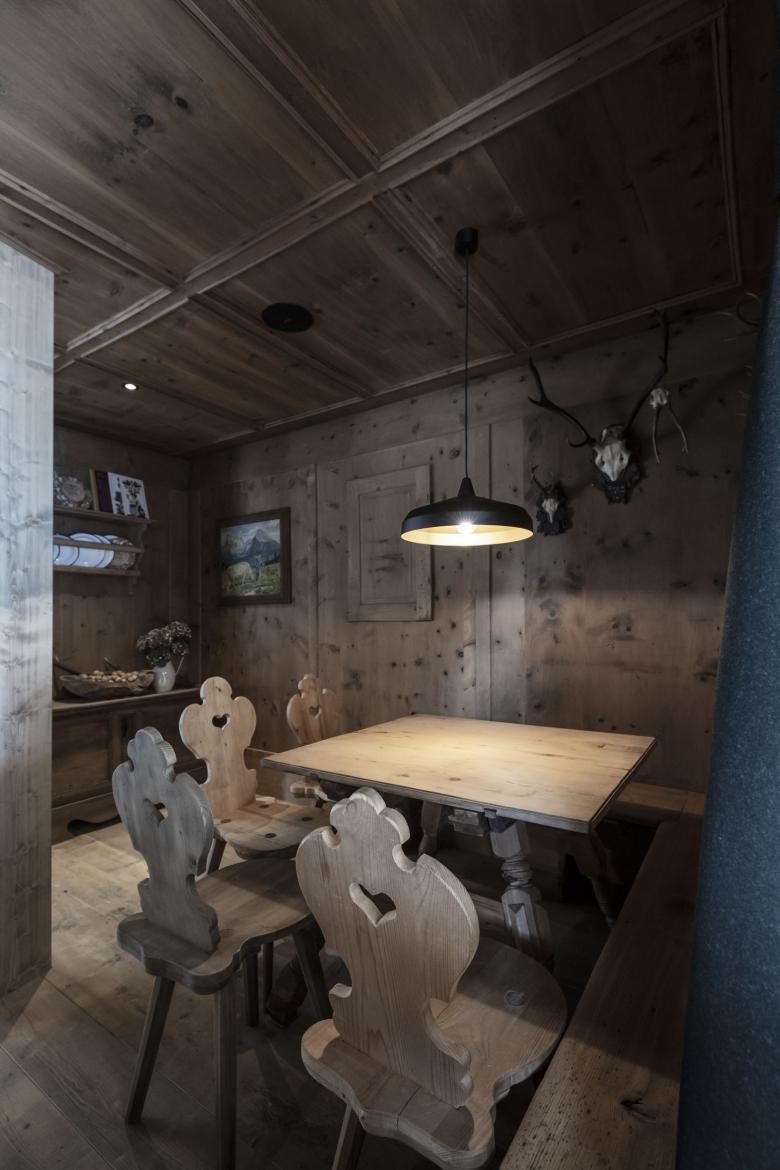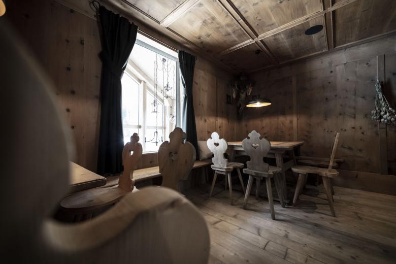The two floors, which are used for different functions, can basically be summed-up in one term: “Mit´nond” (being together) – a claim that indicates the importance of community in South Tyrol, whether in cooking, eating, celebrating, playing cards or through merely exchanging ideas and stories. At every corner this idea comes through and creates places where a little round table feeling can arise. The table per se - of course in the most varied of forms - is the central element where warmth, the joy of life and entertainment meet.