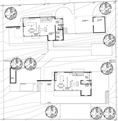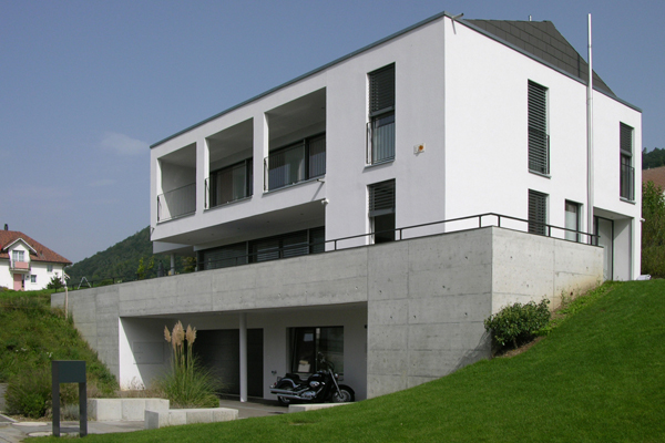 Zwei befreundete Familien haben in Stein am Rhein ein 2000m2 grosses Grundstück gekauft, um dort ihren Wohntraum zu verwirklichen. Zwei am Hang gebaute, von aussen scheinbar identische Häuser liessen doch zwei ganz individuelle, auf den jeweiligen Bauherrn zugeschnittene Wohnformen zu.