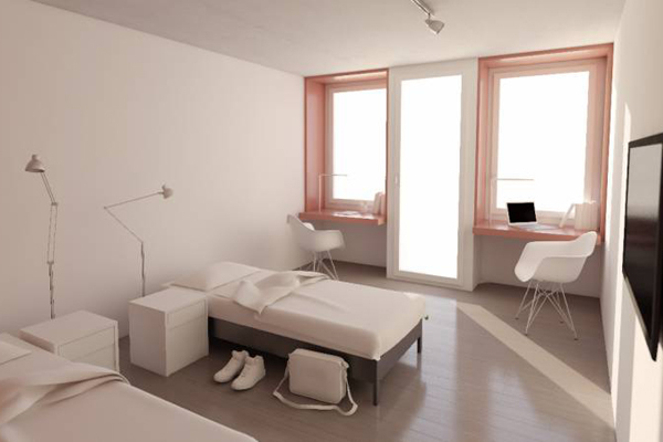 An die alte Halle angrenzend entsteht die Swiss Handball Academy (SHA). Auf drei Etagen gibt es 32 grosse, modern und zweckmässig eingerichtete Zweier- und 10 Viererzimmer.