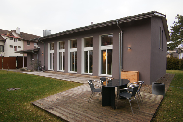 Offenheit von Aussen nach Innen mit den grossen Fenstern sowie grosszügige Raumsituationen zeichnen diesen Bau aus. Wenige Materialien wurden sowohl Innen wie Aussen gezielt eingesetzt. Das ganze Gebäude wurde energetisch nach Minergie Standard saniert.