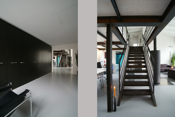 Innen bleibt der grossräumige Charakter erhalten und der Hauptwohnbereich wurde als 2-geschossige Halle mit Lofteigenschaften umgesetzt.