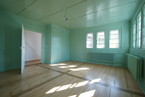 Der 2-geschossige Kopfbau dient als Hauptzugang der Anlage und wird über Eck erschlossen. Hier sind Eingangshalle mit Treppenanlage und Lift sowie allgemeine Räume platziert. Im Altbau enstand im Erdgeschoss ein Cafe und im Obergeschoss eine Wohnung. Im Längsbau wurden 10 Wohnungen mit 2.5-3.5 Zimmern untergebracht.