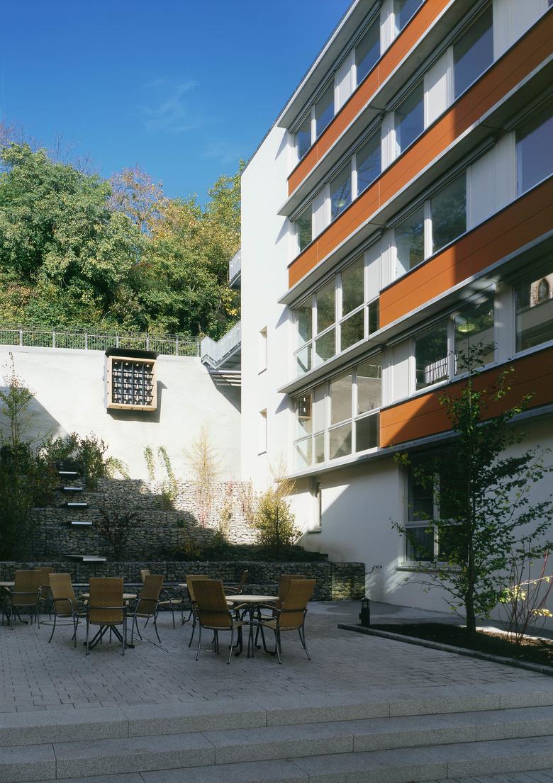 Das Gesamtprojekt gliedert sich in mehrere Teilbereiche: Der 1. Baukörper hinter den bestehenden Wohnbauten der Huttenstraße. 1. Zäsur: Der öffentliche Zugang zur Andreasstaffel und zum Haupteingang Pflegeheim. Der 2. Baukörper mit Haupteingang zum Pflegeheim. 2. Zäsur: Halböffentlicher Bereich mit Zugang zum Betreuten Wohnen. Der 3. Baukörper mit den betreuten Wohnungen.