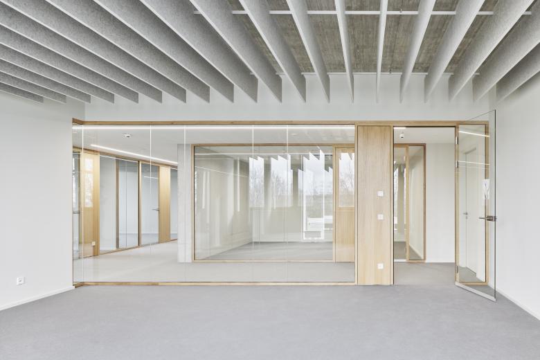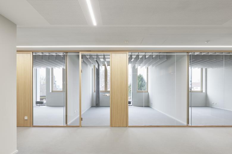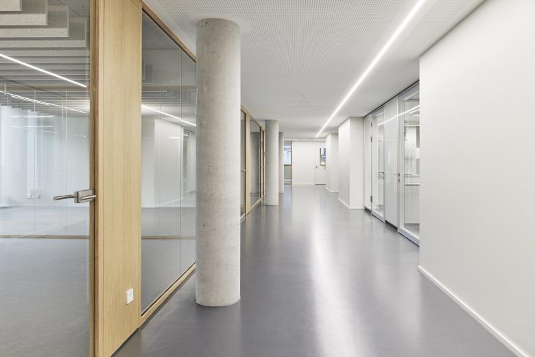 Das Projekt befindet sich im Spannungsfeld zwischen der Hochtechnologie, die das Unternehmen repräsentiert, und einer einladenden und patientenfreundlichen Atmosphäre. Daher sind die Räume unter Bewahrung von Diskretion hell und offen gestaltet. Die warme Materialisierung, Farbigkeit und Haptik ermöglicht die Zugewandtheit zu Patienten und Mitarbeitern.