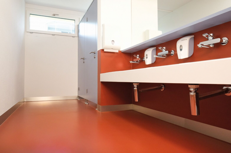 Auch für die Sanitäranlagen und Schulwandbrunnen haben wir den richtigen Wand- und Bodenbelag, diese haben wir mit unserem PUROLISS® ausgeführt, die Farbe wurde dabei an den Bodenbelag angepasst. Wir sind sicher, dass sich die vielen kleinen Racker im Kindergarten wohlfühlen und vieles Lernen und Erleben werden.