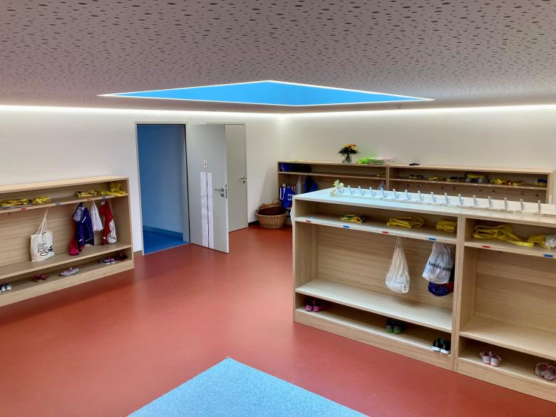 Der Kindergarten soll neu themenbezogen farblich abgegrenzt sein, deshalb wurde der allgemeine Bereich in einem Rotton, die Kindergartenräume in einem Gelbton und die Therapieräume mit einem Blauton geplant. Dank der grossen Farbpalette unseres NATUROLISS® Bodenbelages konnten wir die farbenfrohe Idee umsetzen und die Räumlichkeiten in eine spielerische und kreative Umgebung verwandeln. Für einen Kindergarten ist der NATUROLISS® Bodenbelag perfekt geeignet. Er besteht zum Grossteil aus natürlichen Materialien, weist eine angenehme Haptik auf und ist dennoch langlebig und darf durch Spiel und Spass der Kinder beansprucht werden. Zudem ist er durch seine fugenarme Ausführung auch im Unterhalt komfortabel.