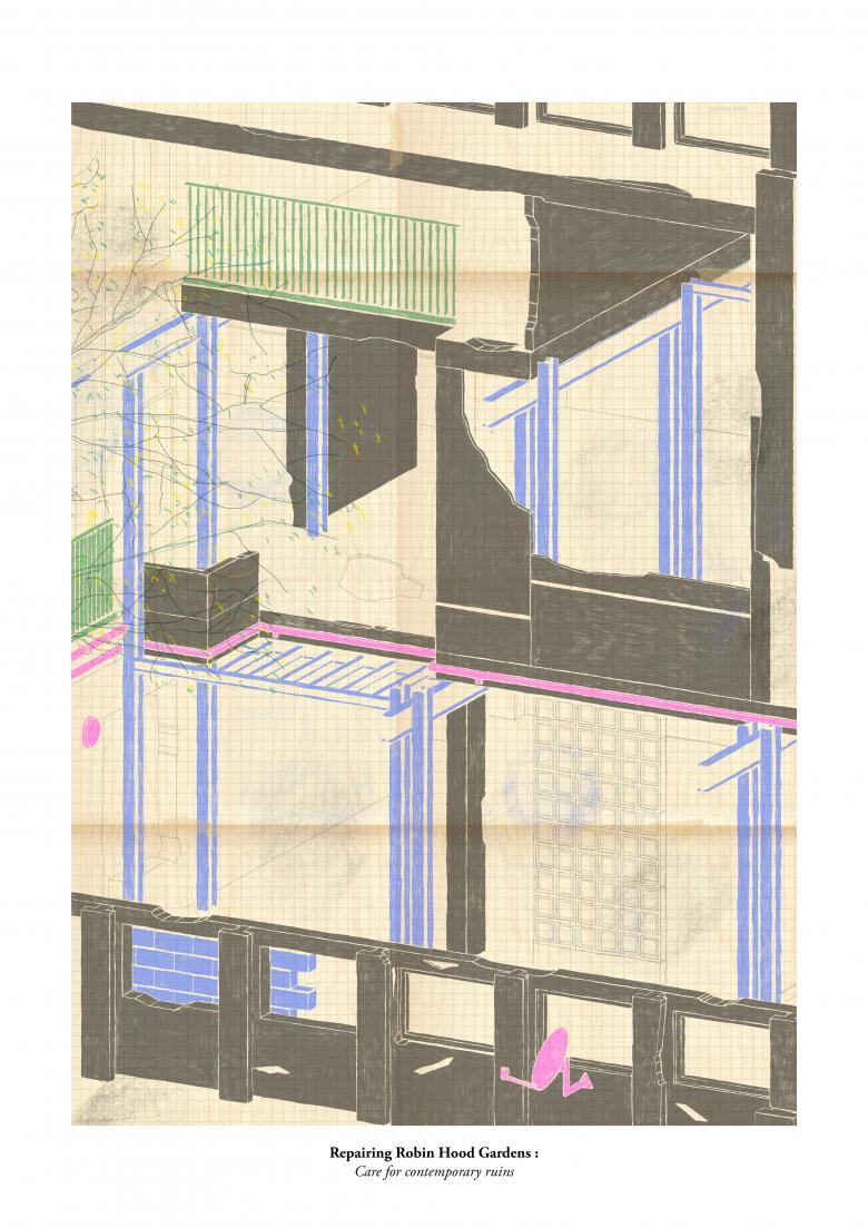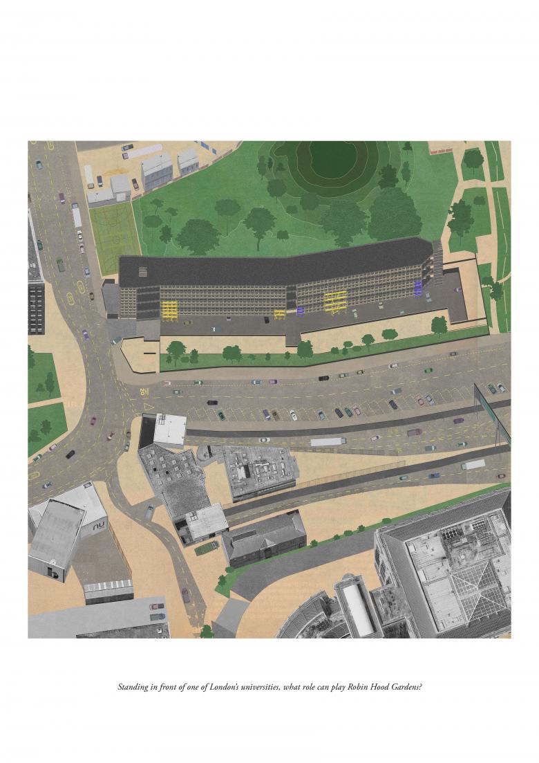 Facing its imminent demolition, Robin Hood Gardens, the large-scale housing project by Alison and Peter Smithson asks for urgent attention. Our project proposes the radical repair of the building and tackles simultaneously the precarious situation of student housing in the UK.