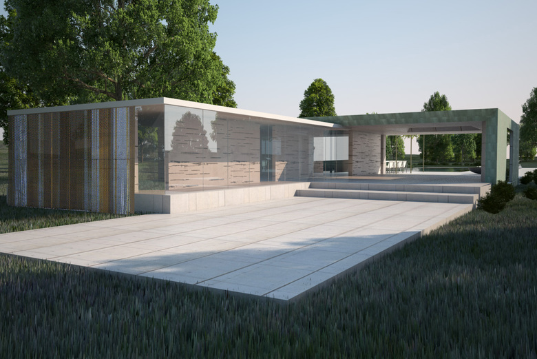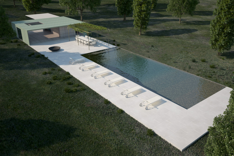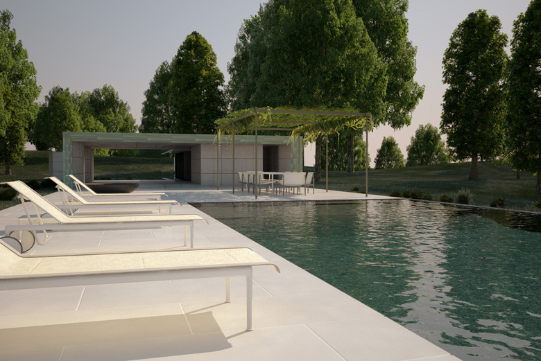 This project, a 1,240 square foot insertion of a pool and pool house onto a wooded site on Shelter Island, NY seeks to harmonize the built landscape with the natural landscape. The design responds to the client’s need for guest space and an outdoor recreation area and takes as its narrative the integration of the elements: fire, water and earth, organizing them into a sequential progression on the site.
