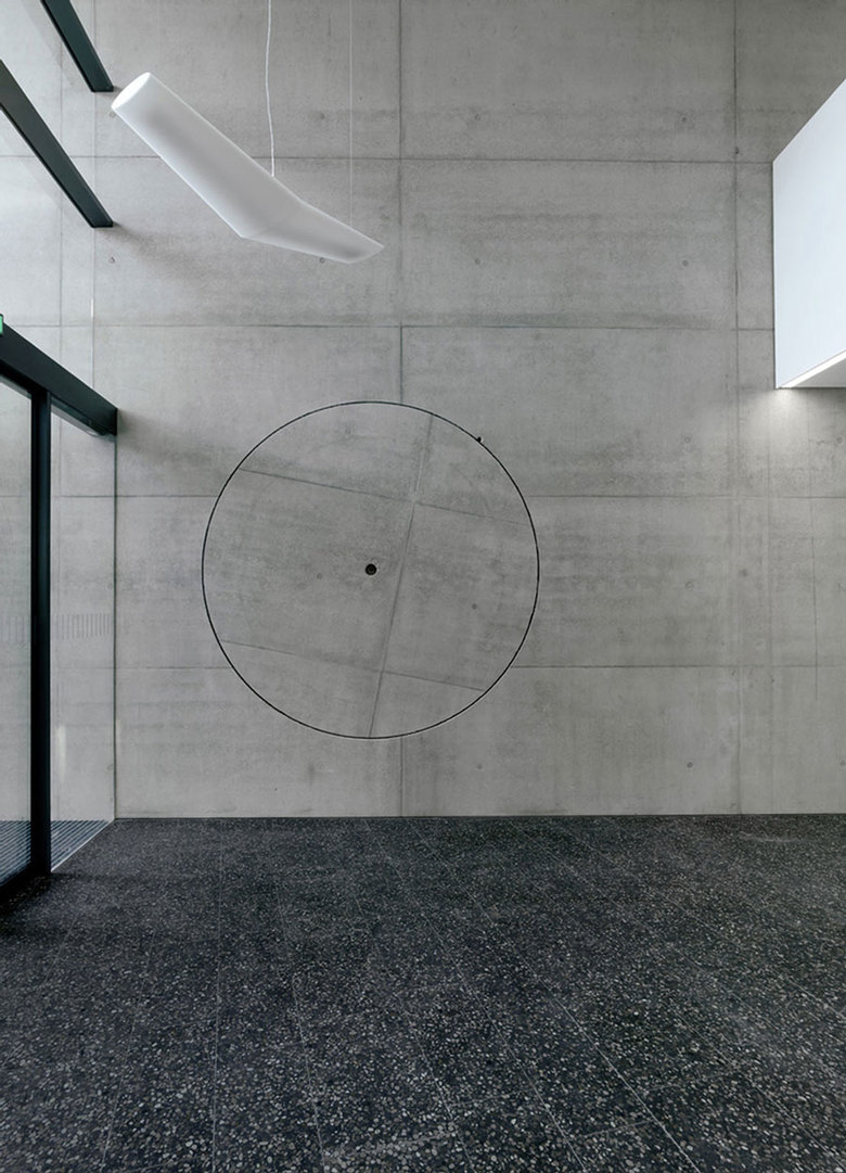Im Foyer, direkt im Bereich des Haupteinganges, befindet sich die Kunst am Bau mit dem Titel „TONDO“, ein Rundbild, welches sich aus der Architektur selbst herausschält, die Architektur sichtbar verrückt und unabdingbar mit dem Ort verbindet.
