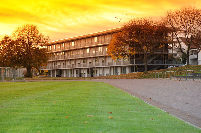 Der Baukörper orientiert sich am Straßenverlauf und nimmt die Flucht des bestehenden Studentenwohnheims auf. Möglichst viele der bestehenden Bäume werden erhalten, insbesondere die freistehende Linde im südöstlichen Teil bleibt als Solitär bestehen. Die entfallenen Bäume werden durch Neupflanzungen auf dem Erbbaugrundstück ersetzt. Das Gebäude selbst fügt sich in den bestehenden Geländeverlauf ein und ersetzt zum Teil den künstlich aufgeschütteten Wall.