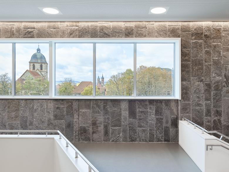 Gleichzeitig wird mit dem gewählten Konzept der Bezug auf die Entstehungsgeschichte des Bauvorhabens sensibel gewahrt, unter anderem indem die noch intakten Bauelemente wiederverwendet werden. Es ist ein eleganter Schritt in die Zukunft, der die Wirkung des Stadthallen-Kubus selbstbewusst verstärkt und pointiert.