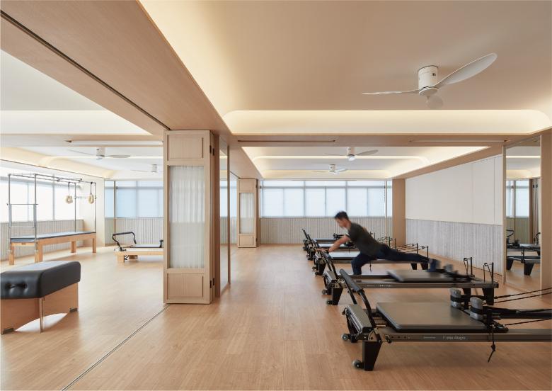 Pilates is an exercise focused on muscle control, which emphasizes concentration, core, breathing, and precision. In our first "BodyConcept Pilates Studio" space, we used consistent and orderly layers in our design, to quickly bring members to "concentration" mode. In this new "BodyConcept Pilates Studio" space, we improved the original interior and let in ample natural light, to expand the transparent and breathing space.