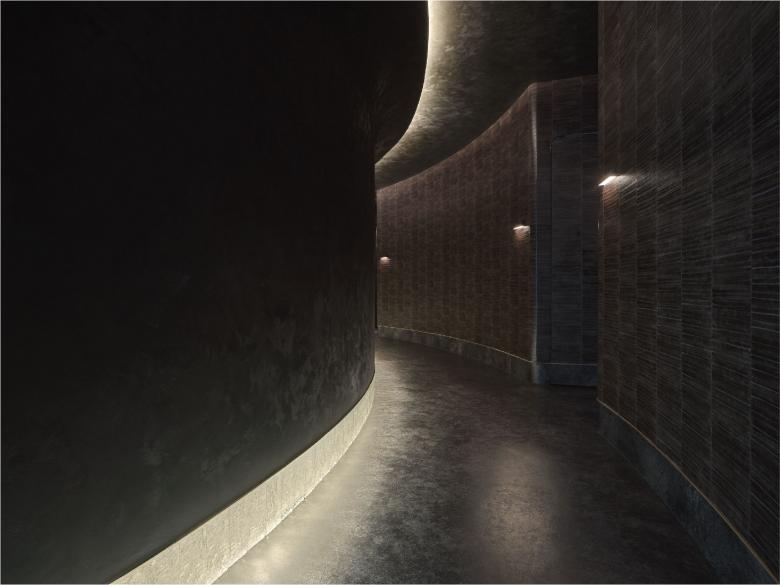 Following the dim light, the porch of the arc providing the guests the time to relax and relieve the body, at the same time, the darkness also sharpens all the senses. The black without lighting is a kind of pure tolerance. When all kinds of visible light have been absorbed, the vision would be surrounded by darkness.