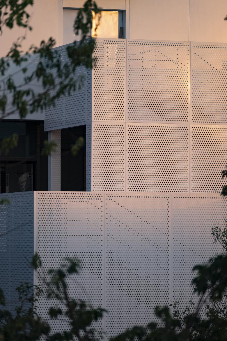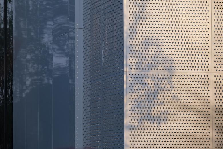 The mountain of the prototype area consists of two parts, the building itself and the pavilion, including the fire stairs attached to the building. The former creates a solid volume through solid metal panels and glass, while the latter creates an imaginary form with perforated aluminum panels. The real and the imaginary complement each other to form the monument mountain of mortal life.