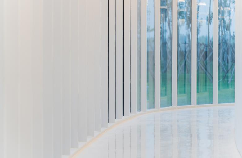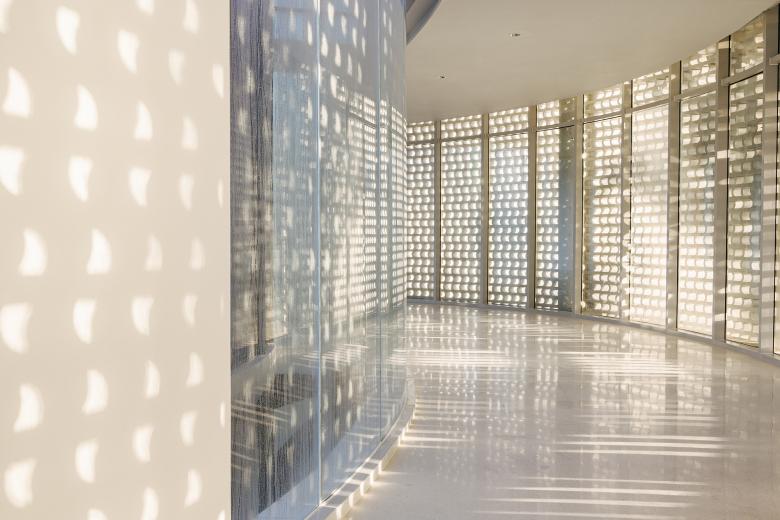 The interior and exterior walls of the Monologue are made of glass, solid wall and flower wall. Independently or in combination, the three are continuous as shifting ink brushstrokes that create the varying boundary conditions of the museum. The flower wall is "written" down as the ink dries.