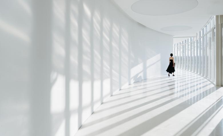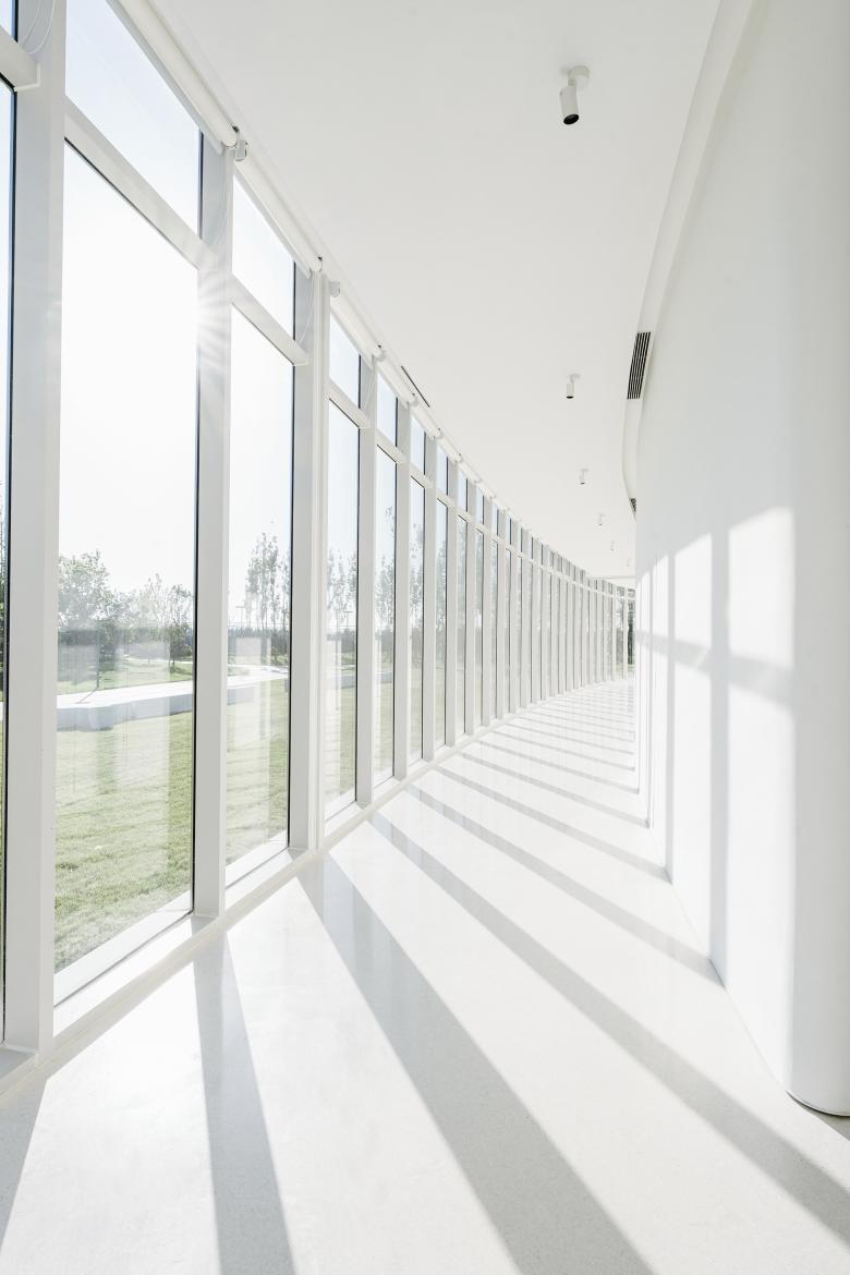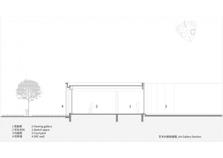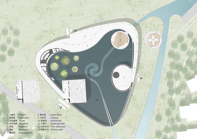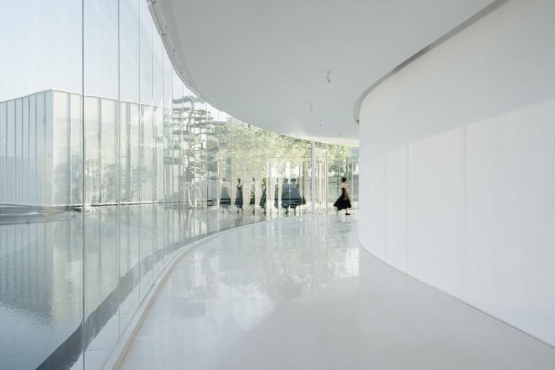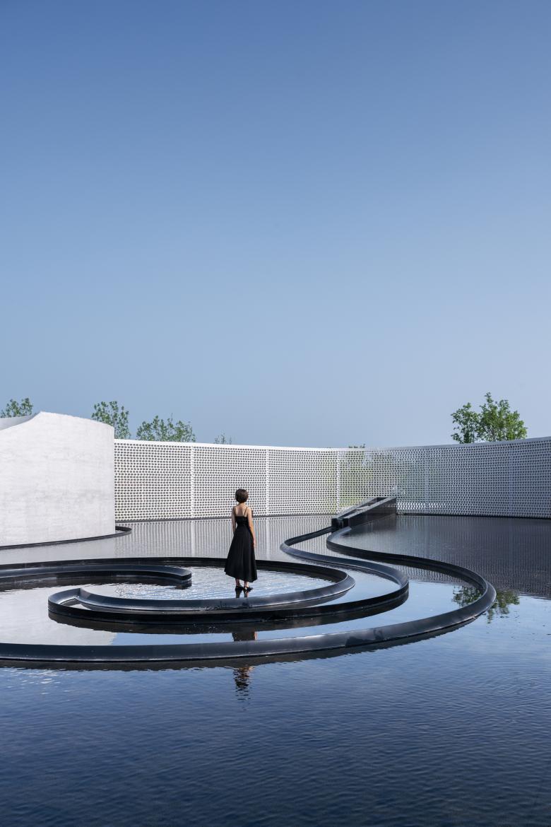 The most artistic feature of Chinese painting is the line. Different parts of the brush are used to form various lines on the paper, straight and flexible, thick and light, dry and wet, varying in thickness but continuous. Such lines not only inform space but also frequency. I see the boundary of the Monologue as such a shifting ink line. I use white instead of black in the architecture. The starting stroke is the small oval theater. The point is the yoga room, the dried brush is the flower wall, the art gallery is the stroke that connects these, the thin and somewhat fast is the corridor with a nib, then it leans to become a side peak forming a slow thick line, the enlarged art museum, then the dance studio is a stroke slowly back to the nib. At the beginning the art gallery and the art museum are closed on the outside and open on the inside to the water courtyard, while after that it is closed on the inside and open on the outside to the large landscape, which resembles how the pen moves.