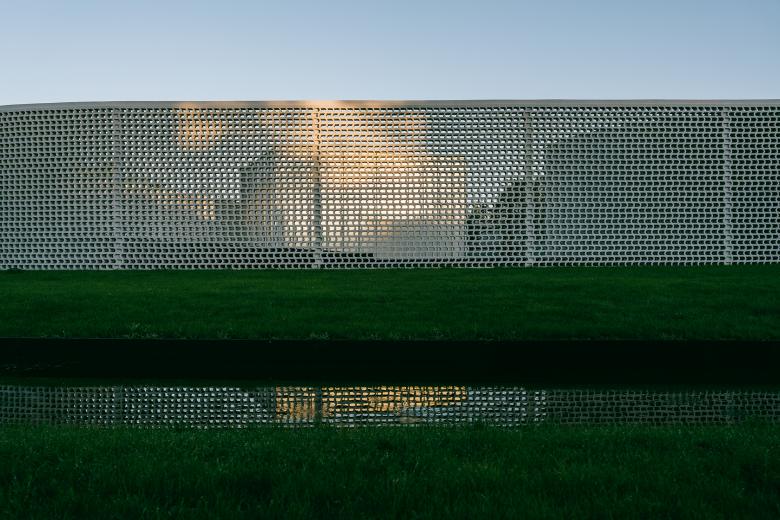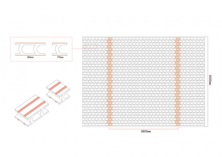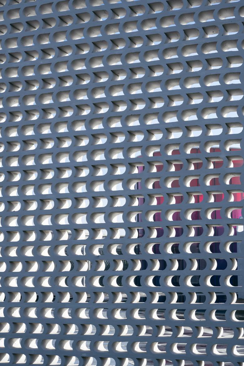 To keep the 5m high flower wall safe as well as unfolded continuously, it was necessary to add structural columns every 3.8m behind the flower wall. At the same time the roof panels are overhanging as the compression roof of the brick wall. The intricate flower brick is a GRC brick made of 3% steel fiber content using the premixed method, and there are two modules combined to form the façade pattern. The brick wall either runs double to frame a courtyard, or interfaces with glass or solid walls to forms a continuous 150-meter-long corridor to wrap around the Monologue Museum.
