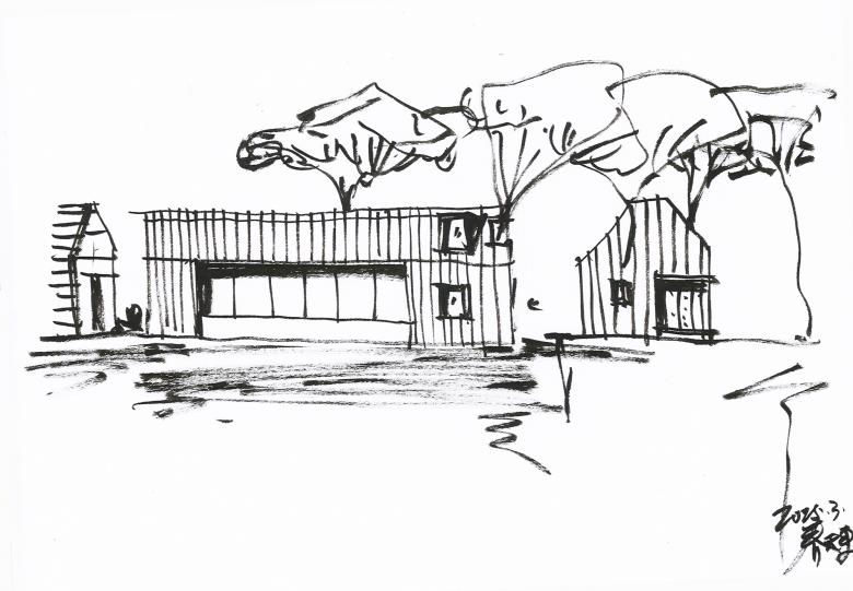 On February 28, standing on the bridge and seeing the site, Wright and Mies reawakened in my mind. It was the horizontal line—like a Chinese scroll unrolling. In our aesthetic tradition, a beautiful life is framed through landscapes, gently unfolding across the horizon. Even when the scroll ends, the scene continues in our imagination.