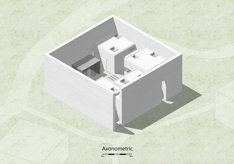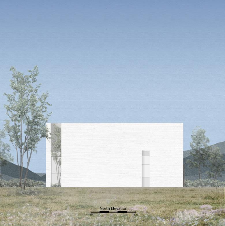 The prototype of this interior can be found in the numerous descriptions and paintings of the convent rooms. It seems more appropriate to call it a sanctuary rather than a prison. Since I wanted to construct an experience of self-exile, the interior needed to present the most simple and silent arrangement. All kinds of small arrangements to please people were eliminated, including the clock. This is a place to re-experience time, as the occupant can only estimate the approximate time by the change of natural light. To be precise, the experience of time takes you back to the old days, the blurred feeling of being free from the precise measurement of clocks. Perhaps this is the only way that the sky can replace the landscape and the phone, so that light can be dominant elements in space. To be precise, the experience of time takes you back to the old days, the blurred feeling of being free from the precise measurement of clocks.