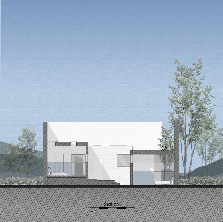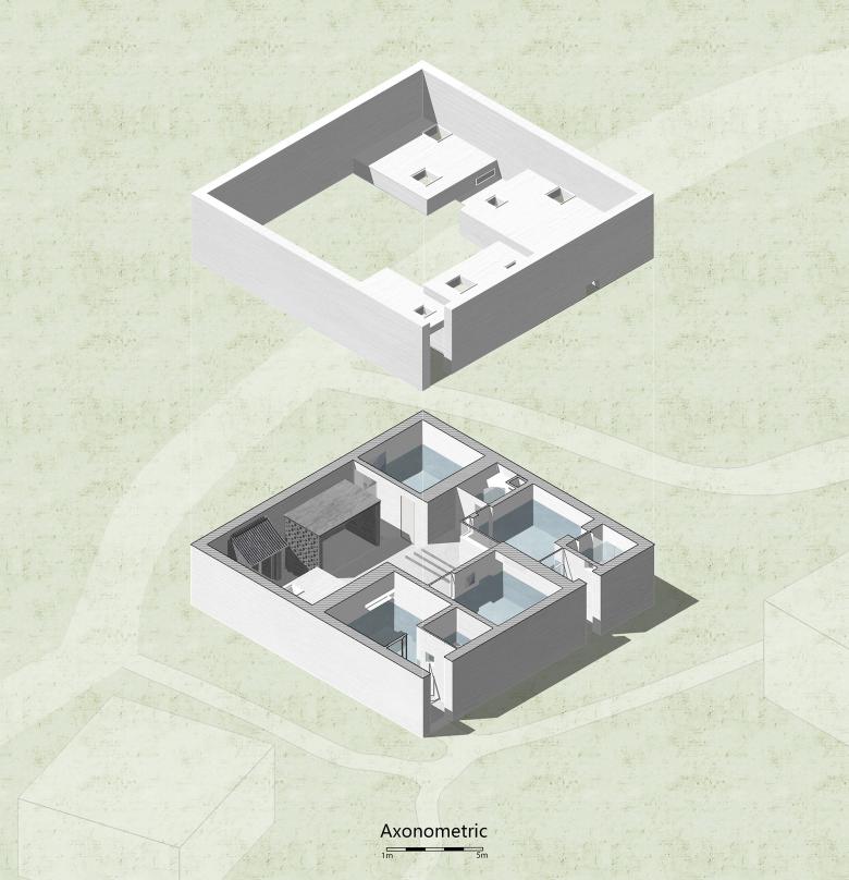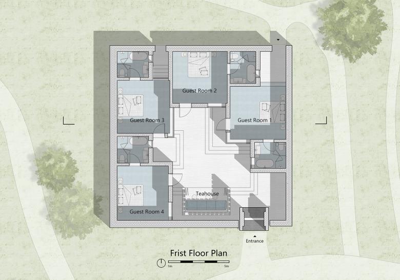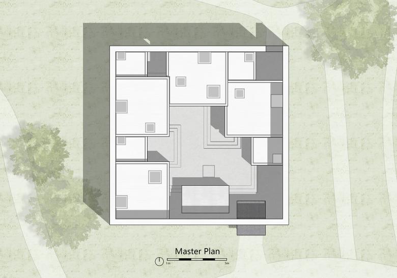 I designed each room as a separate building, there is no corridor connection. Walking out of the room is the outdoor. It’s a typical type in china’s courtyard. From this perspective, I redesigned the traditional building type and reassembling it. The core of this courtyard is the central courtyard. Unfortunately, the fire pit in the center of the courtyard is eliminated because of the building code in China. The historic nature of the fire pit as a kind of aggregation center no longer exists, and even the TV, which barely replaced it, has lost its similar function. Smartphones have completely replaced the centrality of family life. I think the intention of setting up the fire pit was to create a site that closes the relationship between strangers who don't know each other, and it doesn’t deliver.