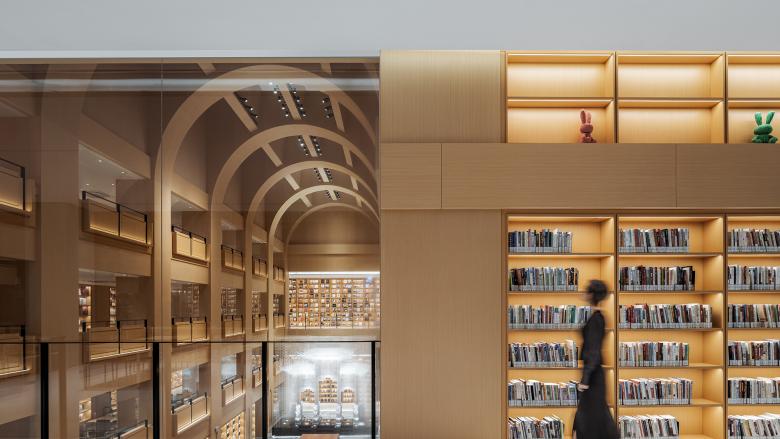 We create a "Chinese nested box" structure in the Zikawei Library, which is derived from the traditional Chinese trousseau box in the Han Dynasty. The first layer of the box is the thin façade designed by DCA; the second layer consists of the main programs of the library such as coffee, various reading areas, lecture halls, exhibition halls, etc; the third layer is the donut-shaped aisle; the fourth layer is the atrium that serves as the library's reading hall; and lastly, the heart of the library, the last protected treasure of the box structure.