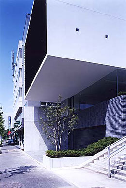 地上部分では道路から引きをとり、上階部分をはね出すことで、通りへのつながりを保ちつつ、都市的なスケールが現れるよう計画した。