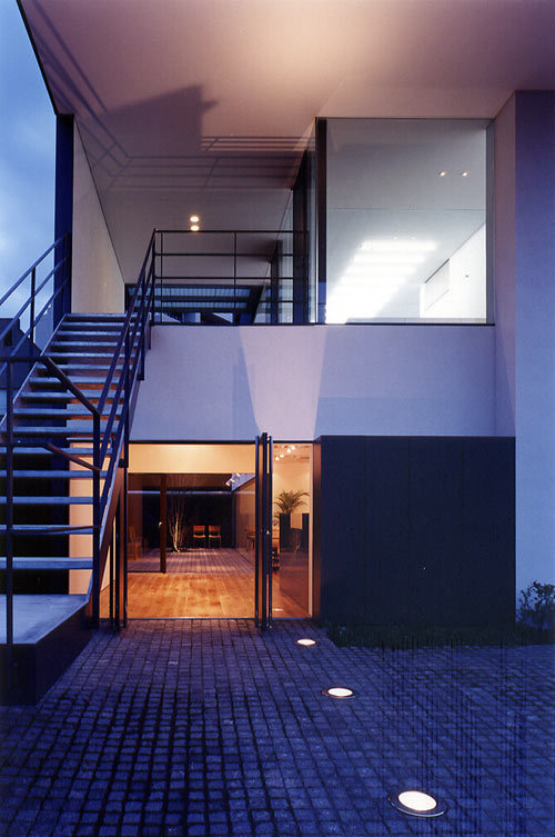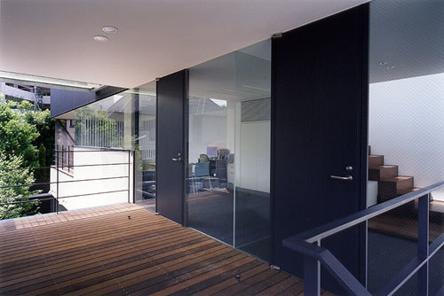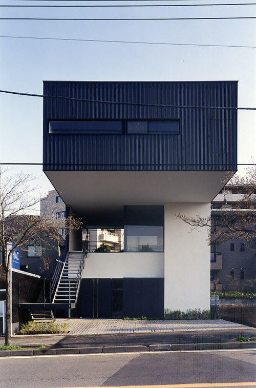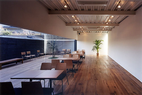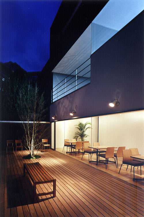 1Fカフェ、2FSOHO、3F個人住宅からなる複合用途の建物。カフェと同じ面積の中庭、SOHOを挟み込むテラス、住居の中心に位置する中庭といったように、各階が異なる外部環境を適切に取り込む計画とした。