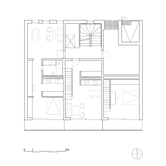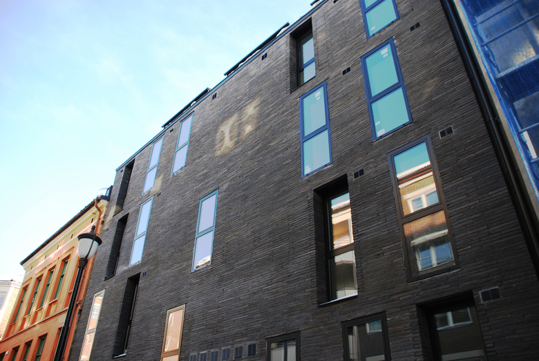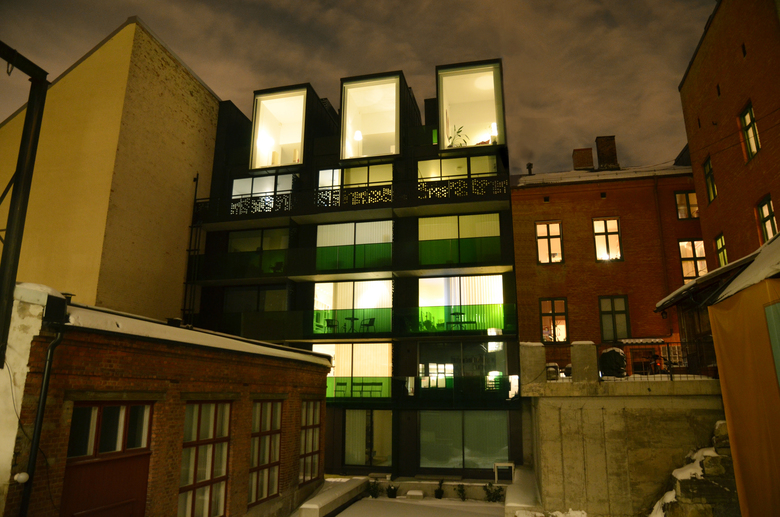 The apartment building, located on Grünerløkka in an area called Ny York (New York), today one of the most colourful and diverse areas in Oslo. The block is a rare remaining example of the intimate blend of housing and small scale industry typical of the 19th century. The new structure is designed with special appreciation of these environs, and the backyard has with the new build gained an exciting and contrasting fusion of architecture. Featuring distinct architectural form, functional solutions, thoughtful details, and a contemporary overall expression, the building adds a new dimension to the area as well as reflecting the diversity by offering a variation of apartment types to accommodate a range of contemporary living situations. The goal was to create an environment adapted to the situation as well as obtaining an efficient exploitation of the site. The result is twelve entities with seven typological variations, divided on six floors, with a range of sizes from 31,5 to 85,5 sq.m. and both one- and two-floor apartments represented. All apartments have south-facing balconies; in addition the top-floors have private roof terraces with a great view over Oslo.