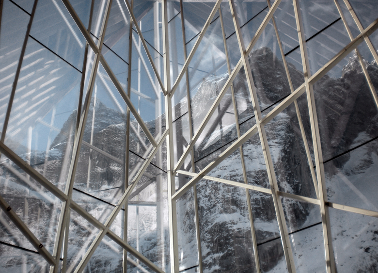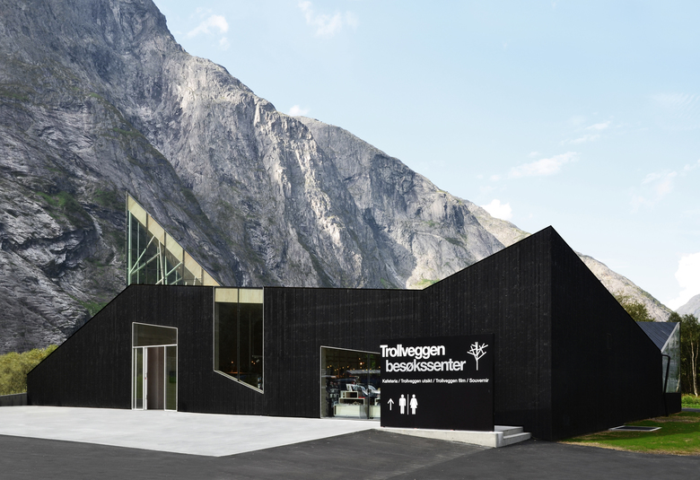 It’s a new cursor at the foot of the Troll Wall; The architecture of the new visitors`center next to E139 is an outcome of the sites` close connection to the impressive mountain wall, Europe's tallest vertical, overhanging rock face in The Romsdal Valley. The Romsdal valley has some of the tallest, sheerest cliffs in Europe and is a popular place for BASE jumping including "birdmen" jumping off cliffs in Wingsuits!