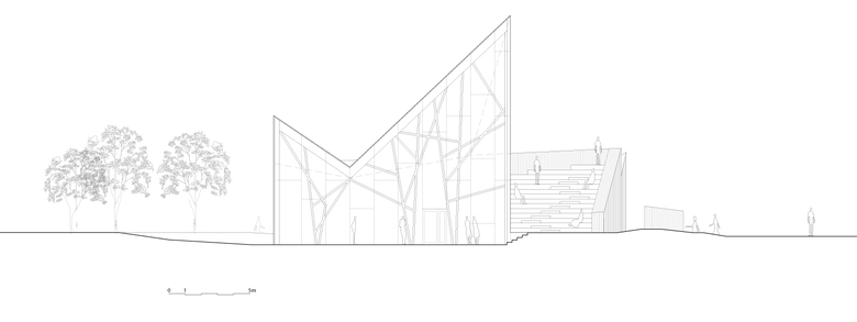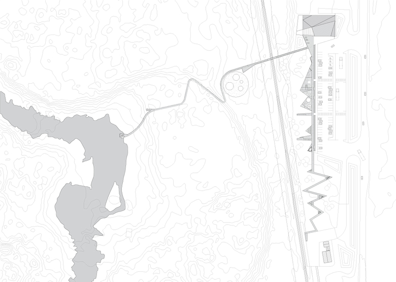 This location allows for an exciting setting for the new service- and information center. RRAs proposal is carefully planned in relation to the Troll Wall. At the same time it is building a character and identity which in itself will be an attraction in the region. The building has a simple, though flexible plan, with a characteristic roof that has its character from the majestetic surrounding landscape. These simple ways of design gives the building its character and identity that makes the Service center an eye-catcher and an architectural attraction in the region.