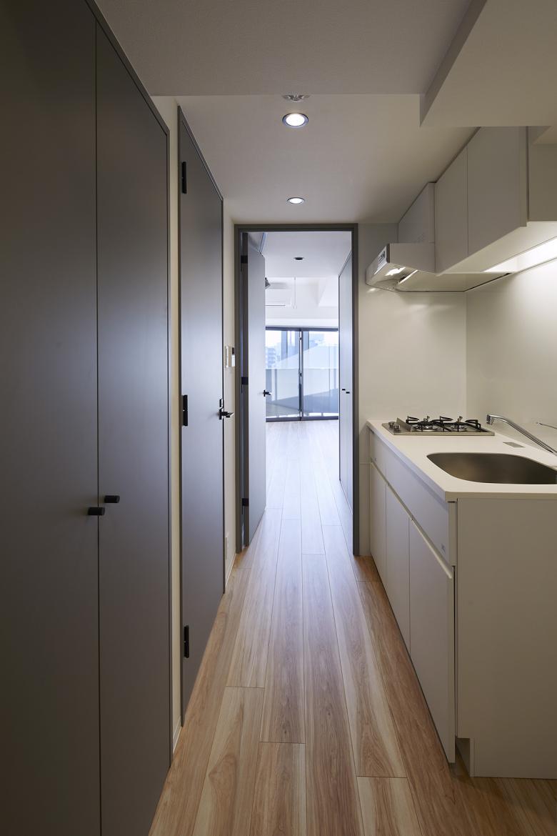 このプロジェクトでも既存が4階建てだったが、11階建ての集合住宅として計画され、22-25m2程度の小さめの面積の住戸が94戸集まる投資用の賃貸住宅として分譲される。アリーナの正面に位置することもあり、建物全体をファサードでアピールする事も求められた。