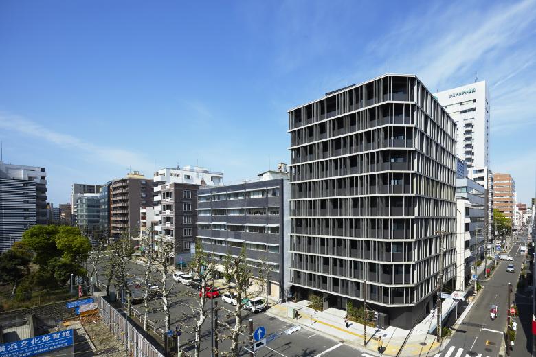 この敷地には元々、横浜防火帯建築として知られる「不老町2丁目第一共同ビル」という宮内建築設計による小さな県公社共同ビルが建っていた。交差点を挟んで反対側には横浜文化会館のPFI再整備事業としてメインアリーナの工事が進められており、近くの教育文化センター跡地には関東学院大学のキャンパスも建設されていて、エリア全体が大きく様変わりしてきている。