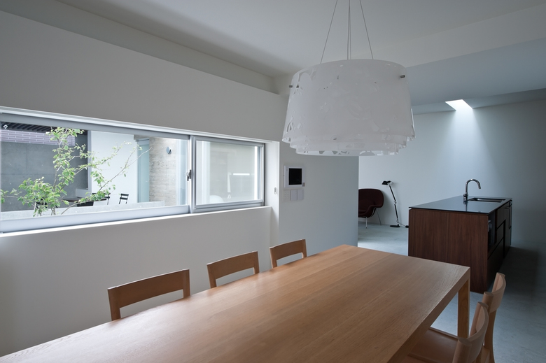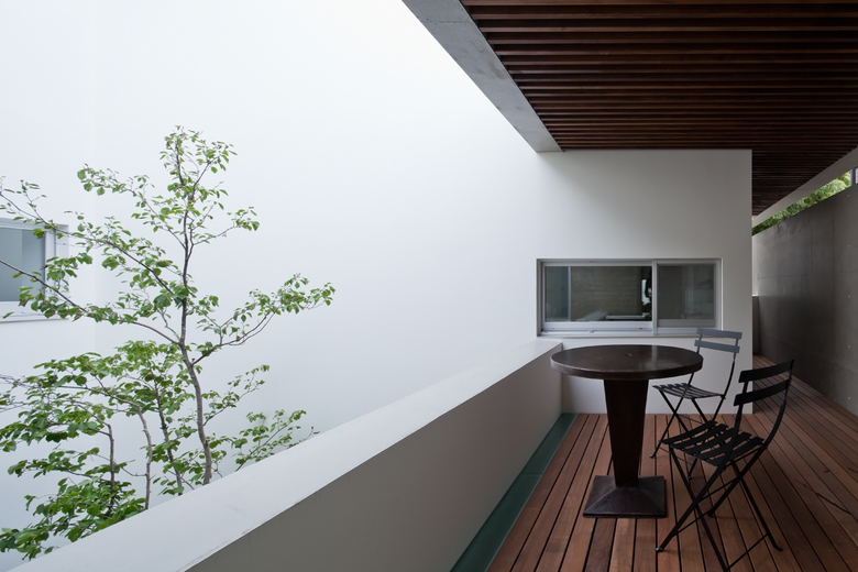 In the center of the house sits a roofed terrace facing the courtyard. The residents enjoy spending time with family or alone in this secure, private space. Although it is surrounded by the busy city life of Tokyo, the house provides a comfortable environment pervaded by a sense of the natural world and the quiet flow of time.
