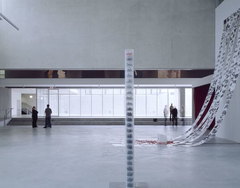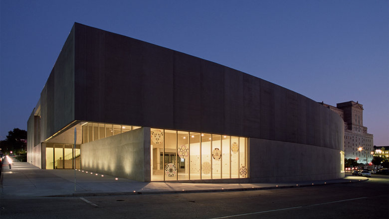 The two-story, 27,000sf museum provides open, flexible space for exhibitions and programs while emphasizing transparency and connection at ground level. The building is formed by two intersecting ribbons of concrete and stainless steel mesh that weave and overlap to define the principal volumes. The lower walls bound the museum and create a series of large interconnecting galleries. The upper walls span above the galleries and define spaces for administration and education. Between these walls, ceiling planes are held at varying heights to create variations in scale, proportion and enclosure, providing a diversity of curatorial opportunities.