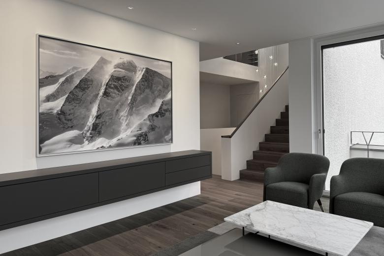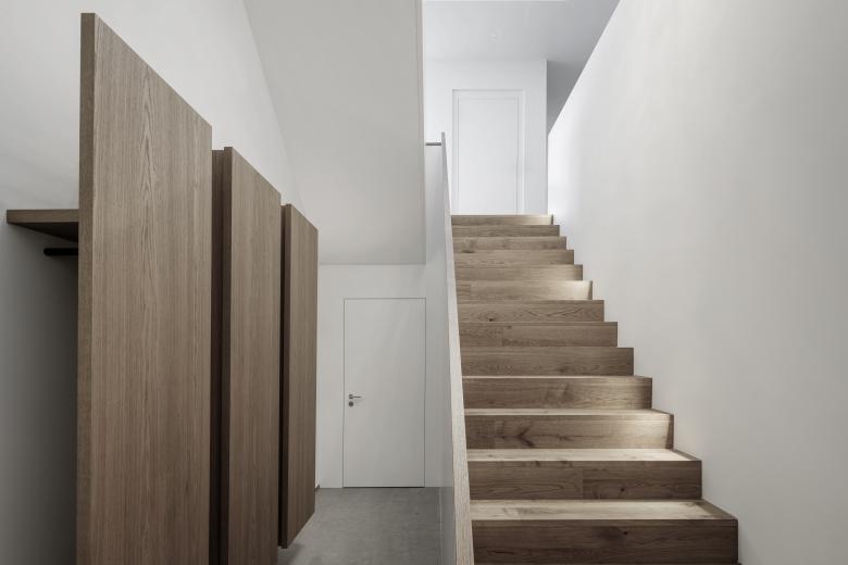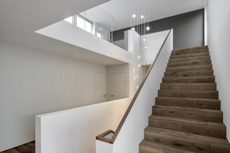 Die Zugänge der jeweiligen Wohnungen sind räumlich getrennt und sorgen dadurch für mehr Privatsphäre. Die Wohnung im Ober‐ / Attikageschoss erschliesst sich über das grosszügige Treppenhaus.