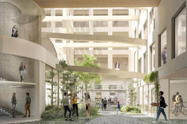 Scène des Loges forms part of the remarkable history of this Parisian neighbourhood, expressing the values of the present human and material legacy. An architecture is proposed that preserves and restores what already exists, minimising new construction. With a systemic perspective, we contribute to accelerating the ecological, social and economic transition poetically and contextually.