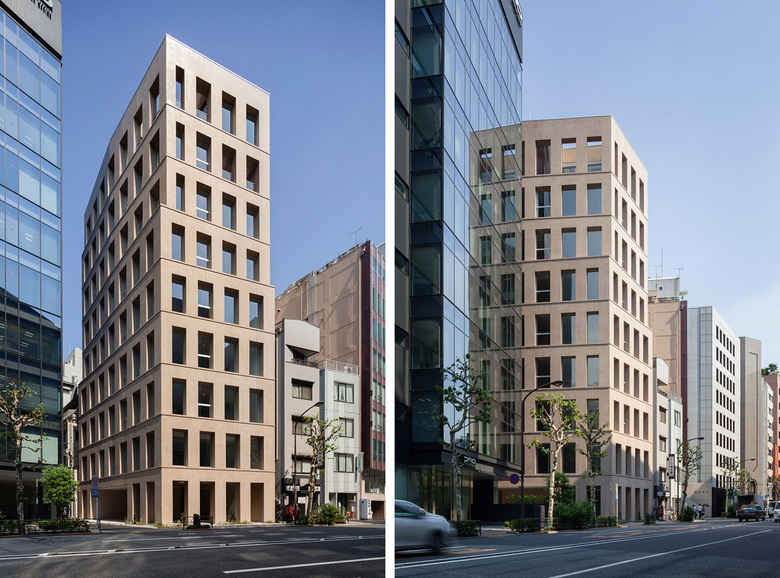 Hiroyuki Ito Architects has completed a nine-story office building in Tokyo's Chiyoda district.