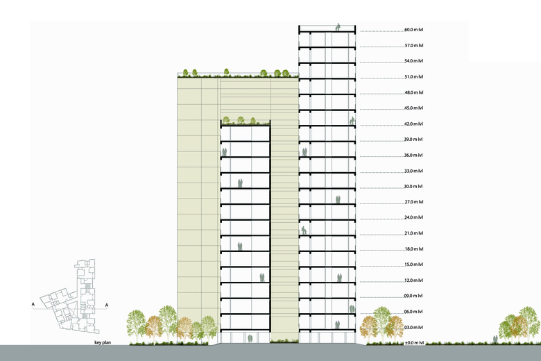 The design draws its iconic form from climatic and contextual considerations, which results in sustainable concepts to capture wind and keep out the harsh sun. The hierarchy of public and private open spaces adds to the social sustainability context of the design. All the units are designed to maximize views to the ocean as well as to nearby green open spaces. The unique spiralling built form creates an identity to one of the critical intersection in south Chennai.