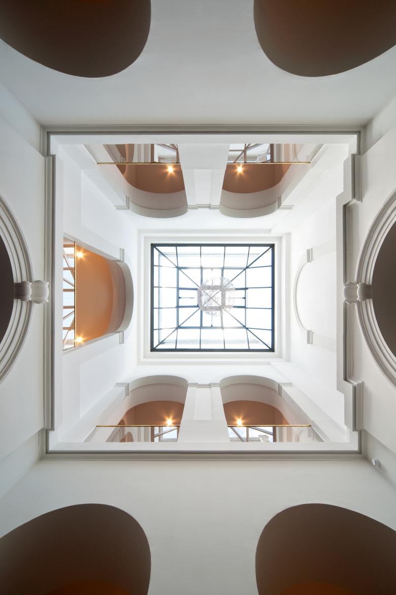 Die Gestaltung des zweigeschossigen Foyerbereiches vor dem Ständesaal sah den Rückbau von Einbauten aus den 50er-Jahren vor und stellte mit der Wiederöffnung des zentralen Lichthofes eine neue Raum-, Belichtungs- und Orientierungssituation her. Bei der Durchwegung des Ständehauses über den Haupteingang, durch das zentrale Foyer bis hin zum Ständesaal entsteht so eine spannende Raumfolge mit unterschiedlichen Belichtungssituationen, Blickbeziehungen, sowie vertikalen und horizontalen Raumbezügen. Die Gestaltung des Ständesaales lehnt sich dabei an das Konzept von Arnold Bode an, indem Farbfassungen, Materialien, Oberflächen und die Konstruktion des Oberlichtes wieder hergestellt wurden.