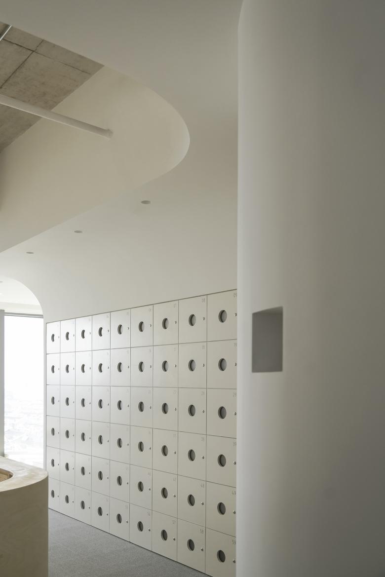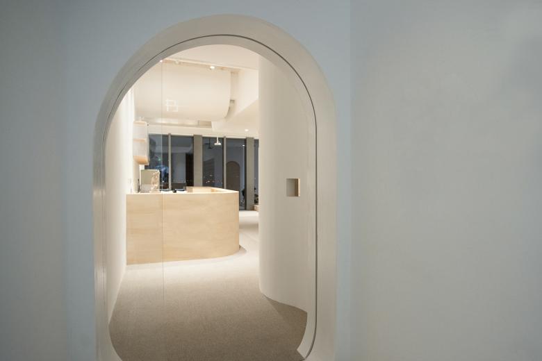 In the design of the entrance image, we intend to create a visual focus point at the end of the corridor, bringing a touch of warmth and softness to the office building. The gently undulating ceiling, conceals intricate pipes, which shows an image of neat and soft. The concrete floor slabs of the original building weave through the cloud-like ceiling, as if it were a gentle utopia that grew out of a reinforced concrete city.