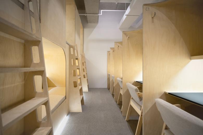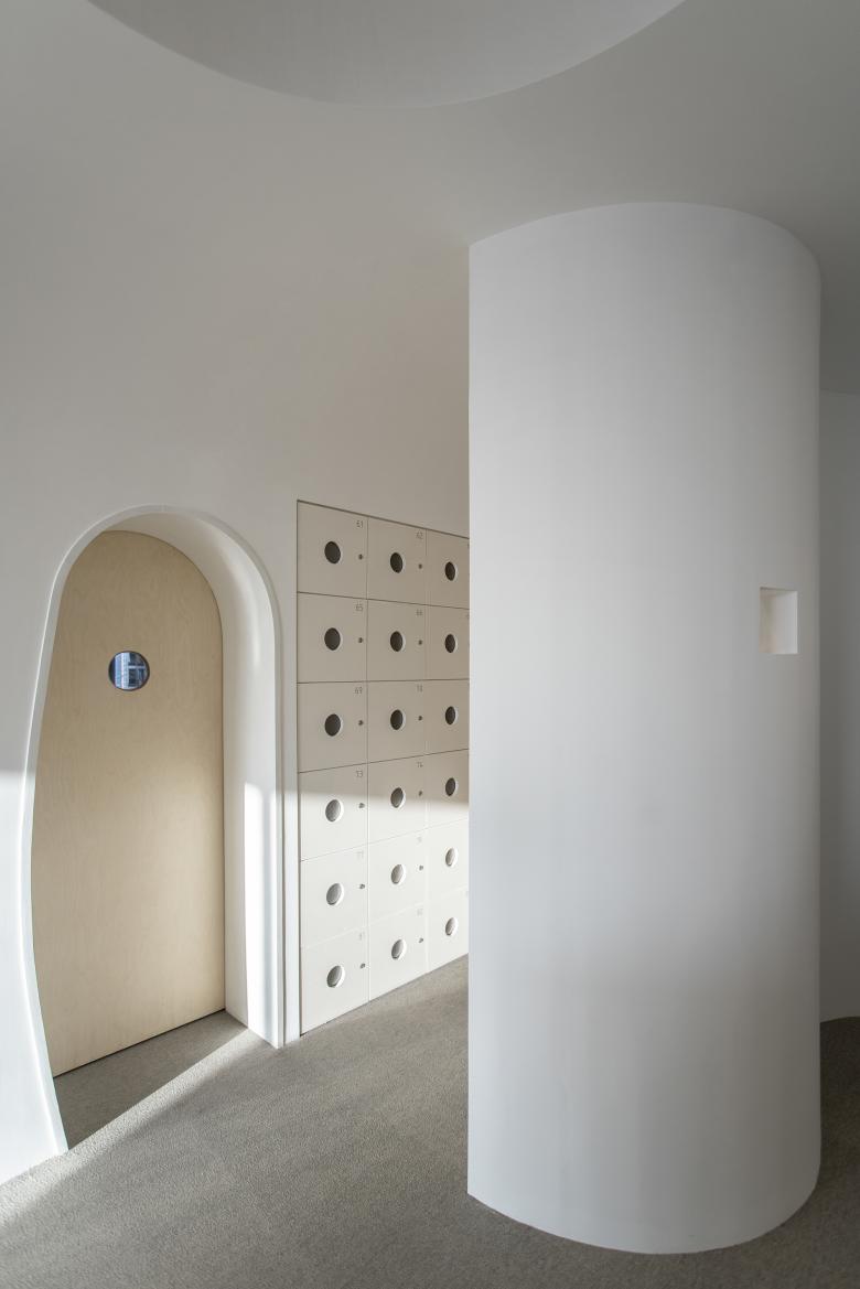 Mind wandering can be one of the ways to get rest. The “Bird's Nest” was created to add a resting place within a limited space. Taking advantage of the height of the building, we created a climbing space, which is accessed from the opening by a ladder, where you can either lie down and rest, or look out the window through a small hole in the side wall.