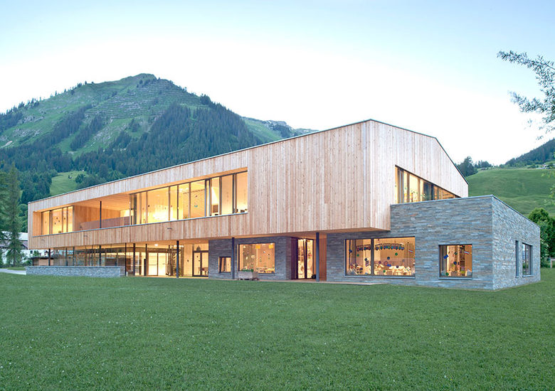 Nach einem einstufigen, geladenen Realisierungswettbewerb wurde das Konzept von sphere by ATP für ein Gebäude, das Schule, Kindergarten und -krippe, Tagesbetreuung und Turnsaal unter einem Dach vereint, zur Realisierung ausgewählt. Das Zentrum fügt sich harmonisch in die ländliche Umgebung ein und tritt trotz Ortsrandlage mit der Gemeinde Holzgau in enge Beziehung.