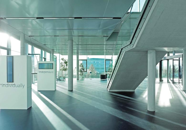Ein Aspekt des Entwurfes war es, den Anteil an versiegelter Fläche zu minimieren; dies ergibt sich durch intelligente Stapelung von Büro- und Produktionsflächen sowie die Platzierung eines Parkdecks in der Landschaftsfuge zwischen bestehendem Gelände und Gebäude. Das nachhaltige Energiekonzept inkludiert ein Maximum an natürlicher Lüftung und Belichtung.