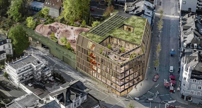 Das Gebäude setzt Maßstäbe durch seine umfassenden ökologischen, ökonomischen und sozialen Qualitäten. Innovative Maßnahmen zur Reduktion des Energieverbrauchs, eine effiziente Ressourcennutzung, großzügige grüne Zonen und eine durchdachte funktionale Organisation der Bereiche tragen zu nachhaltig optimierten Lebenszykluskosten bei. Insgesamt bietet der Entwurf die besten Voraussetzungen, um das Rupprecht-Haus wieder zur zentralen Drehscheibe im kulturellen und sozialen Leben der Gevelsberger Bevölkerung zu machen.