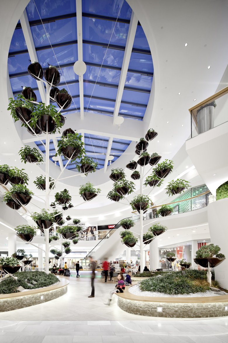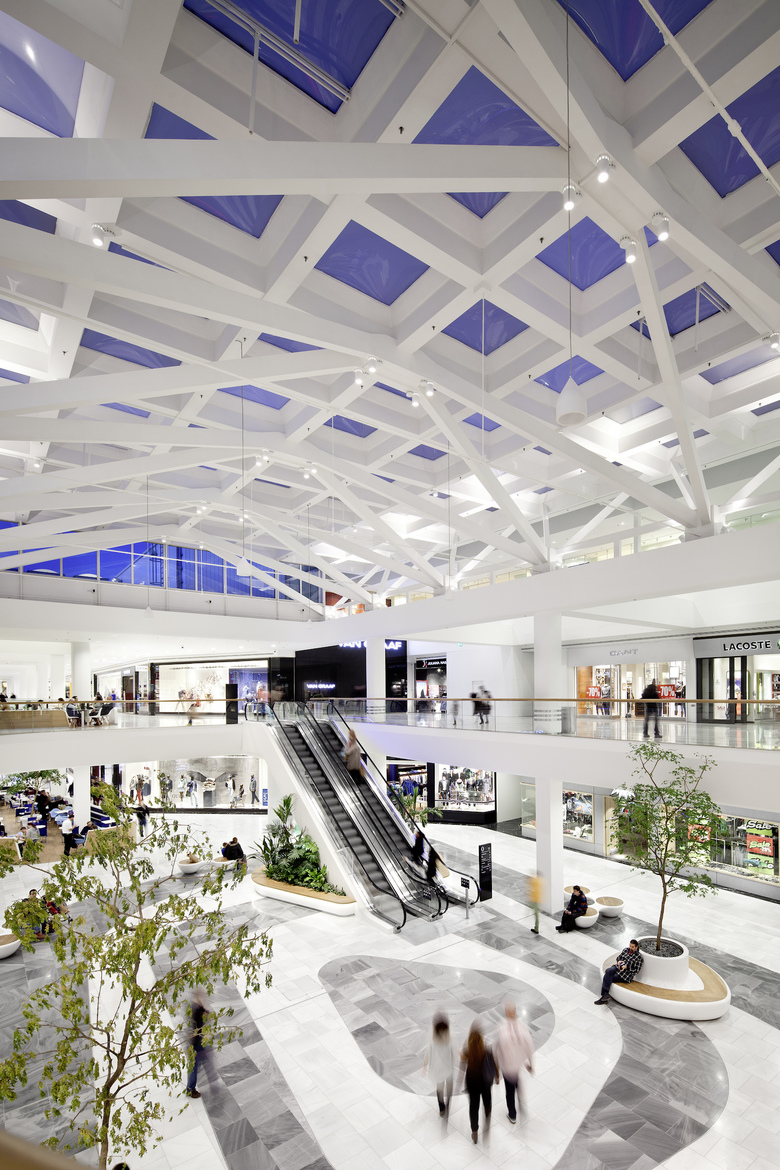 Es entstand weiters ein neues Orientierungssystem mit einer übersichtlichen Abfolge von attraktiven Wegen und Plätzen. Neue Oberlichtbänder im Stammhaus bringen mehr Tageslicht in die Mall und weiten den Raum nach oben. Die neue SCS-Mall ist hell, luftig und weiß.
