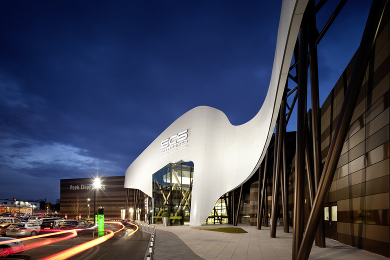 Die Fassade wurde thermisch adaptiert und die Zugänge zum Shoppingcenter neu gestaltet, ebenso die Gastronomie- und Verkaufszonen in der Mall. Expressive Eingänge, sogenannte „Clouds” über gläsernen Fronten, betonen expressiv die neuen Eingänge und schaffen einen deutlichen Kontrast zur ansonsten ruhigen Fassade.