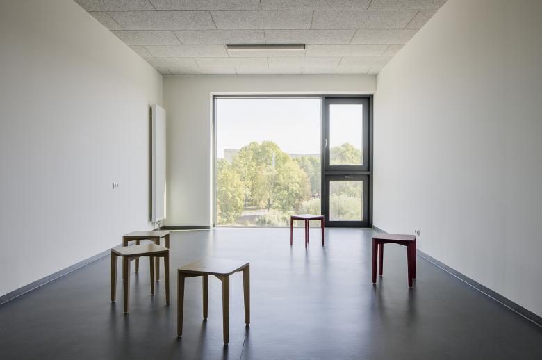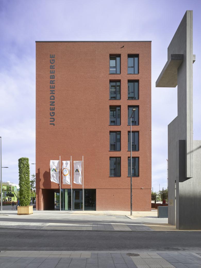 Durch den Neubau entstanden für die Modellbebauung der BUGA 2019 auf den sechs Vollgeschossen in zwei- bis sechser Zimmern 180 Betten für Gäste aus aller Welt. Die Fassaden mit den großen Fensterflächen zur Ostseite ermöglichen den Gästen Ausblicke in das neue Quartier und in den Naturraum des Altneckars. Das Erdgeschoss beherbergt den großzügigen Eingangsbereich mit Foyer und Bistro. Im hinteren, südlichen Bereich des Baukörpers befinden sich die Servicezonen sowie die Technikbereiche. Die Geschosse eins und zwei sind als öffentliche Bereiche definiert, in dem sich der Speisesaal und die Freizeit- und Kulturräume befinden. Die Geschosse drei bis fünf sind komplett als Zimmergeschosse ausgeführt.