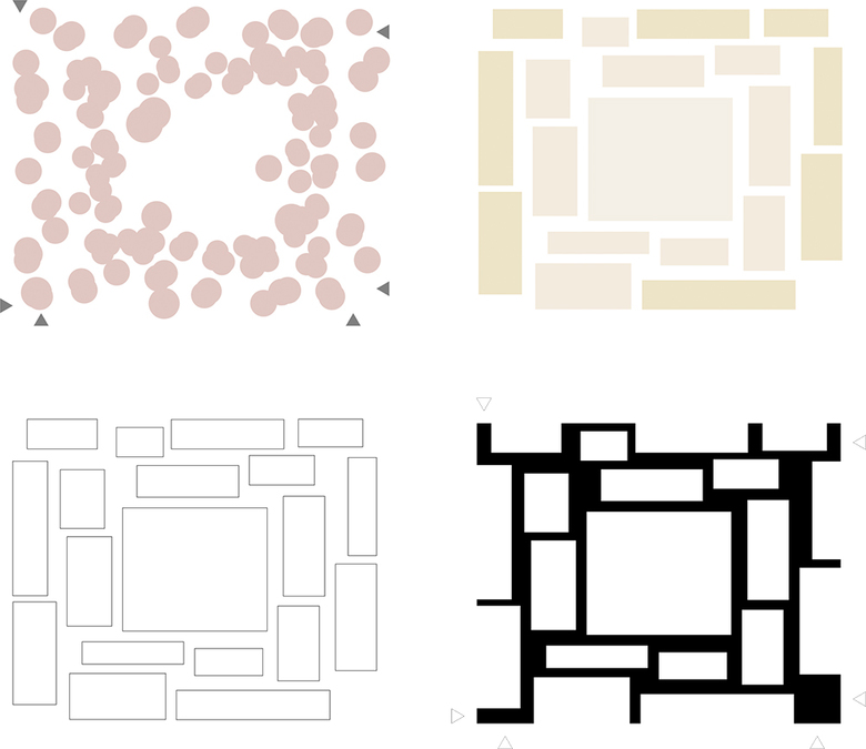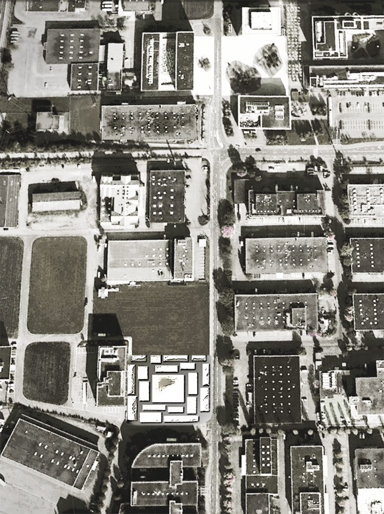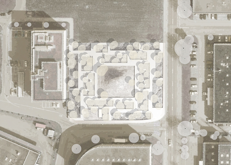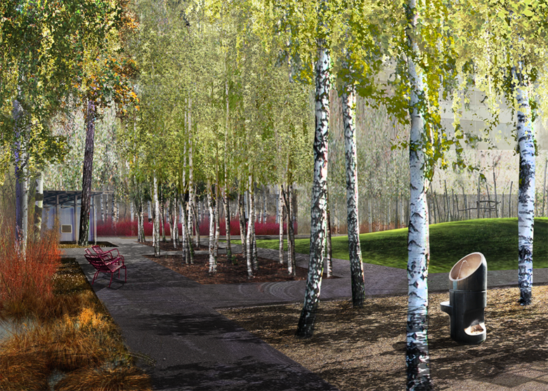 Die Idee für den neuen Erlenpark basiert auf dem Ansatz, Flächen aus der qualitativ hochwertigen, fast durchgängigen Asphaltbelagsfläche des vorhandenen Parkplatzes auszuschneiden und freizulegen. Einem Scherenschnitt gleich, entsteht ein zusammenhängendes und verbindendes Platz- Wegsystem. Die „entsiegelten“ Flächen bilden die Basis für die neue Parkvegetation und können unterschiedlich bespielt werden. Gleichzeitig erfüllen sie aber auch die vielfältigen Anforderungen betreffend Nutzung und Retention.