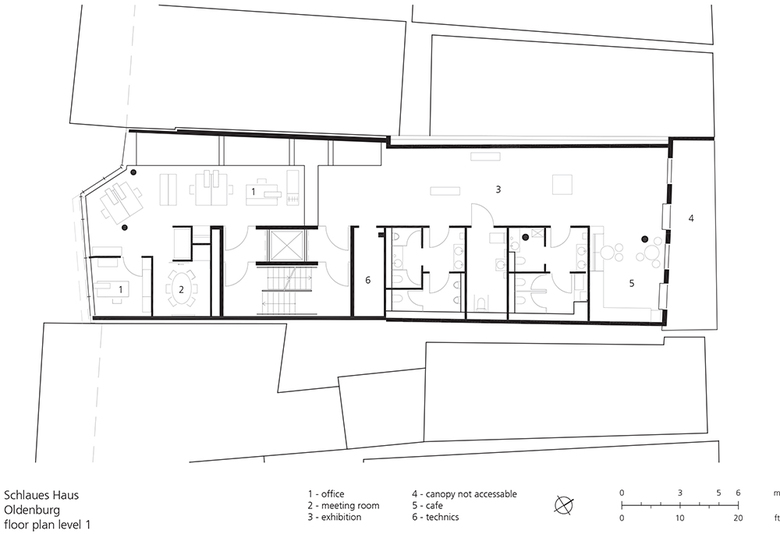 The Schlaues Haus Oldenburg (Smart House Oldenburg), first and foremost, is a public building for the display of the surrounding region’s scientific expertise, as the „City of Science“. Situated in the city center, the building serves as an important venue for people visiting Oldenburg thanks in part to the tourist information center which is located at ground level. The idea of a „Smart House“ is reflected in the architectural concept of the building. It is energy efficient, sustainable and flexible, and, hence, able to suit all kinds of requirements.