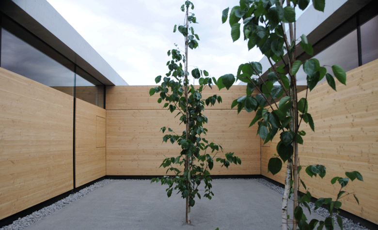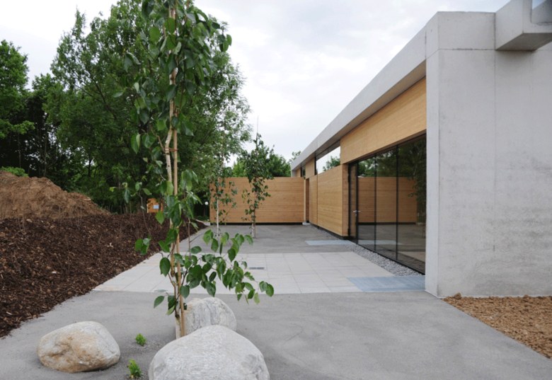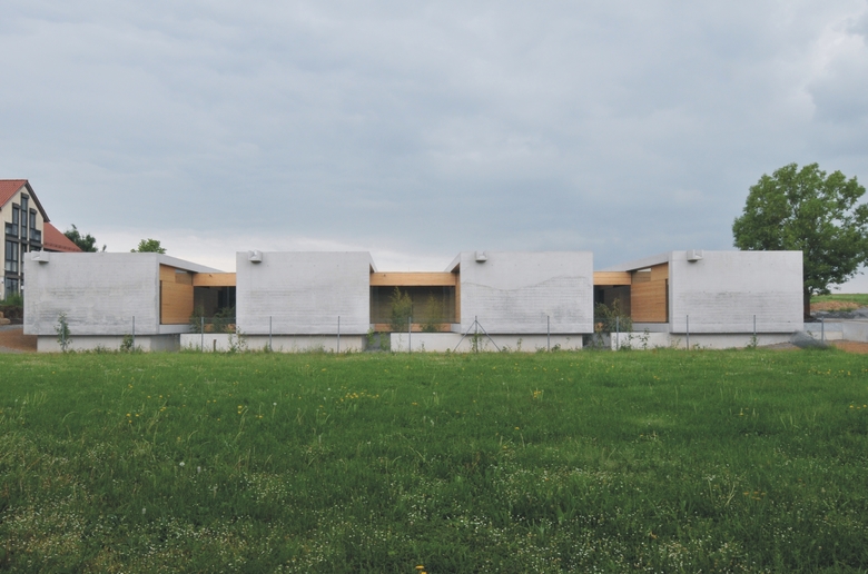 Eine Betreuungsgruppe für 28 schwerstbehinderte Menschen zu planen war die Aufgabe, die der Bauherr 2003 an uns stellte. Beim Entwerfen des Hauses haben wir versucht, uns mit Hilfe von Fragen in die Menschen mit Behinderungen hineinzuversetzen. Daraus entwickelte sich das Konzept einer klaren und überschaubaren Struktur. Daneben spielen Farben und Materialien eine wichtige Rolle. Sie erzeugen Stimmungen und Gefühle oder lösen Handlungen aus. Außer den wenigen notwendigen Vorrichtungen weist nichts im Gebäude auf die Nutzung durch Menschen mit Behinderungen hin. Es sollte ein Haus der Normalität und Autonomie geschaffen werden, in dem ein selbstständiges und eigenverantwortliches Leben möglich ist.